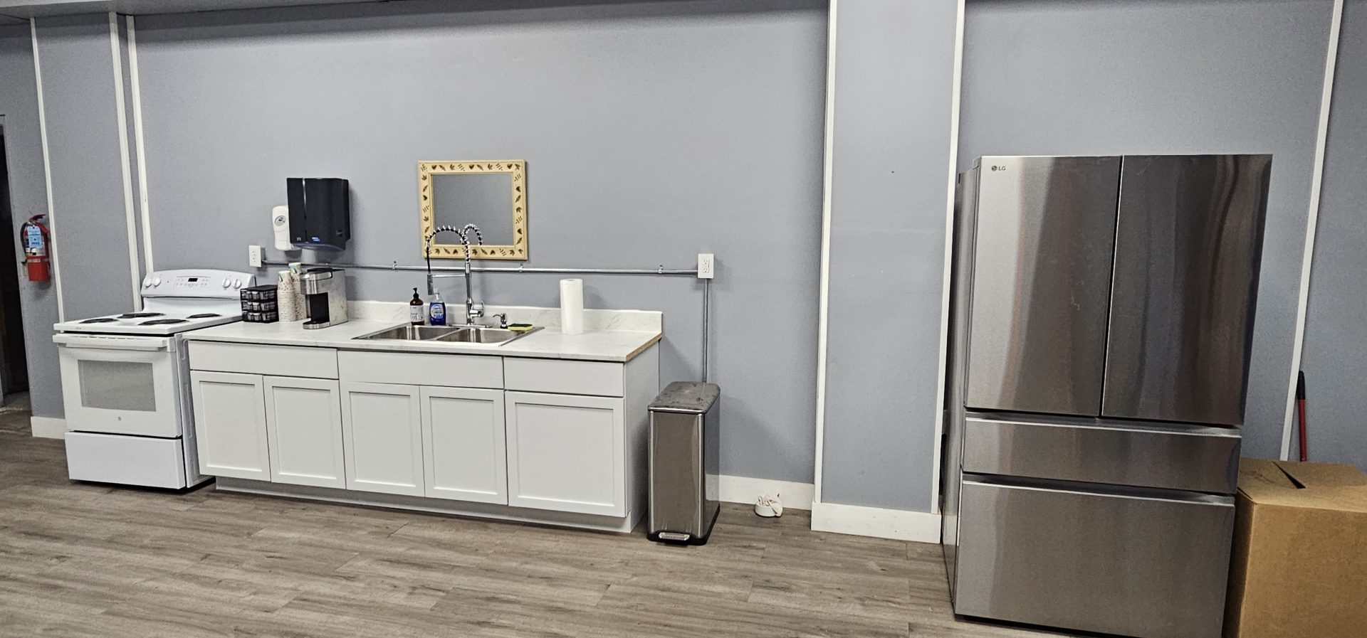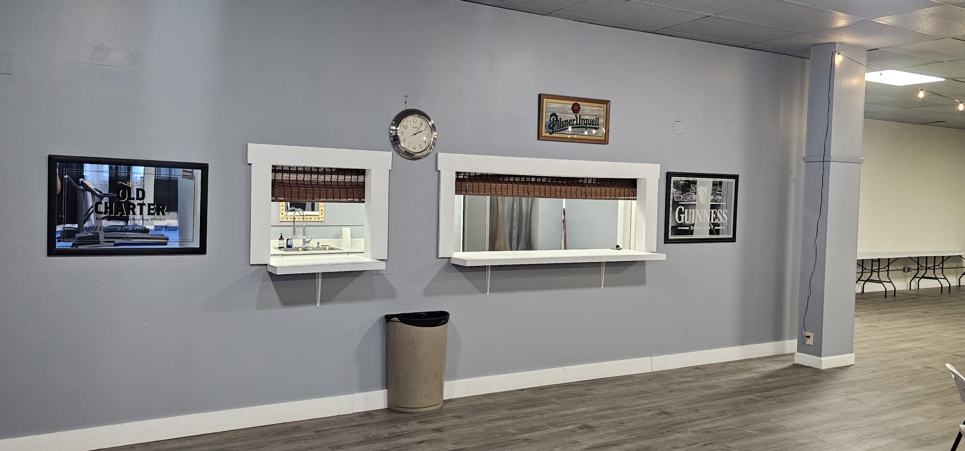 Unlike many rental spaces that leave you scrambling to figure out food service logistics, our venue includes a fully functional kitchen equipped with a refrigerator and stove. The serving window creates an efficient flow for buffet-style service, while our 18-foot table setup provides ample space for food and beverage displays. Whether you’re bringing in catering, preparing food yourself, or having guests contribute potluck style, you’ll have everything you need to keep your guests well fed throughout your event.